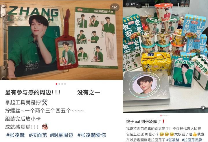 粉丝经济当道,拉面范同样深谙花式宠粉玩法。本次官宣中拉面范携手张凌赫推出随产品套组赠送的限量版的外星来客联名礼盒。小小礼盒大有乾坤,不仅以代言人喜爱的太空航行为主题,更有全套10张“星际旅行”小卡、“航行日志”卡册、“飞船通行证”行李牌、“太空集邮贴”贴纸,以及独一无二且有机会解锁隐藏款的编号卡。周边礼盒的设计与工艺深谙粉丝喜好,一经上线便吸引广泛关注和购买热情。粉丝纷纷喊话拉面范,“怀疑是拉面范内部有小核桃(张凌赫粉丝昵称)的程度”、“拉面范你别太爱”等等自来水好评接连不断,并在全平台掀起晒单热潮。