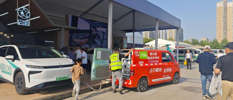 车展期间,密集的车辆展示和试驾活动对充电设施提出了巨大挑战。e打电移动充电车穿梭于各大展位之间,为新能源参展车辆提供随叫随到的上门超充服务。车主只需扫码下单,移动充电车便能即刻“奔赴”车旁,提供即用即充的便捷体验,有效缓解了展位充电压力。