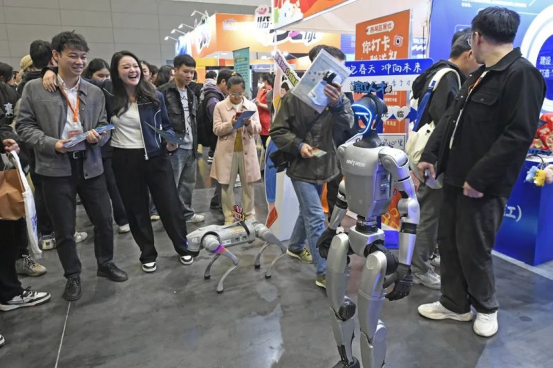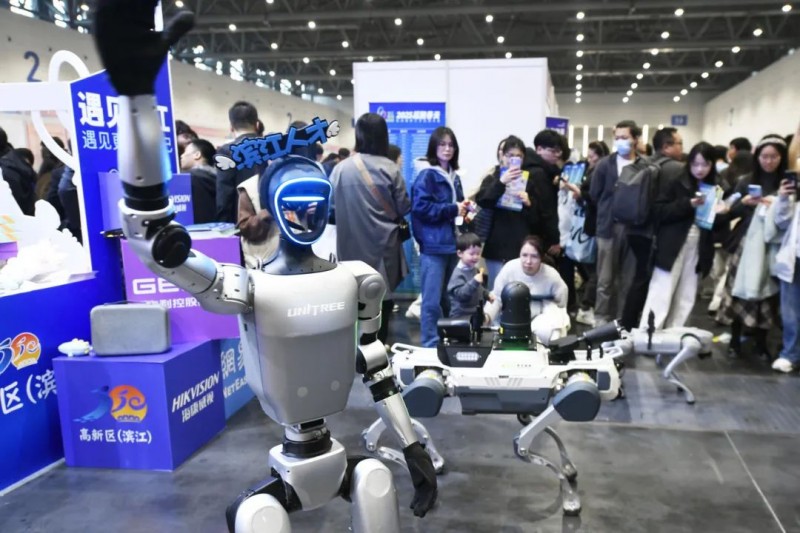 本次活动的核心亮点是“科技内核”的招聘环节。在13000平米的展厅内,830家用人单位提供了2.1万个岗位。杭州的“六小龙”企业——宇树科技、云深处、强脑科技、群核科技等新锐科创企业领衔,阿里、网易、吉利、海康、荣盛控股、零跑科技、安恒信息等知名科技企业也悉数到场。此外,15家鲲鹏企业、60余家上市公司、200余家专精特新企业和110余家国企也纷纷推出硬核岗位,涵盖智能物联、生物医药、高端装备、新材料和绿色能源五大产业生态圈,以及人工智能、合成生物、元宇宙等未来产业。