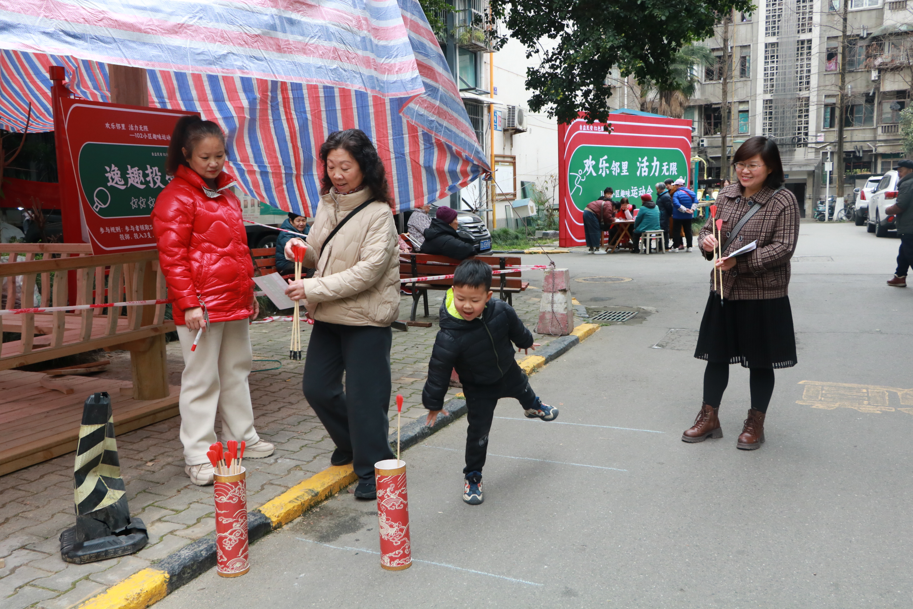 “逸趣投壶” 区,大家手持 5 支箭,站在规定线后,屏气凝神,瞄准壶口投掷。李大爷经验丰富,姿势标准,轻松投入 3 支箭,赢得周围居民的阵阵赞叹。不少小朋友也在家长的鼓励下参与其中,虽然投中的次数不多,但他们玩得不亦乐乎,现场充满欢声笑语。