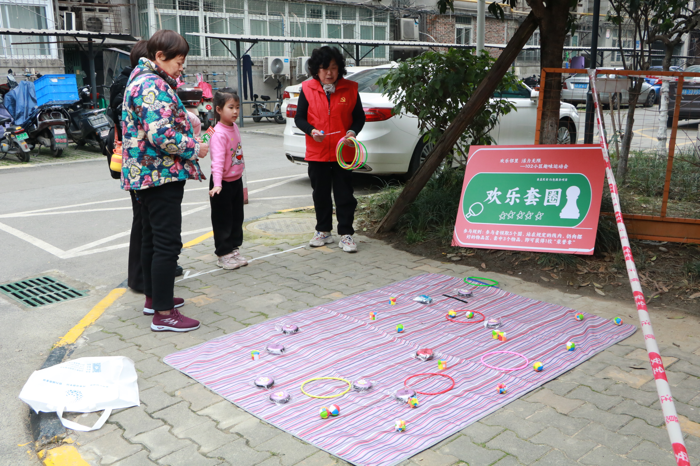 “欢乐套圈” 区域竞争最为激烈,民们手持 5 个圈,仔细瞄准摆好的物品区,有的居民投出的圈精准套中物品,引来阵阵欢呼;有的居民虽然套空,但也不气馁,笑着继续下一次尝试。现场氛围紧张又欢乐,大家在挑战中享受着游戏的乐趣。