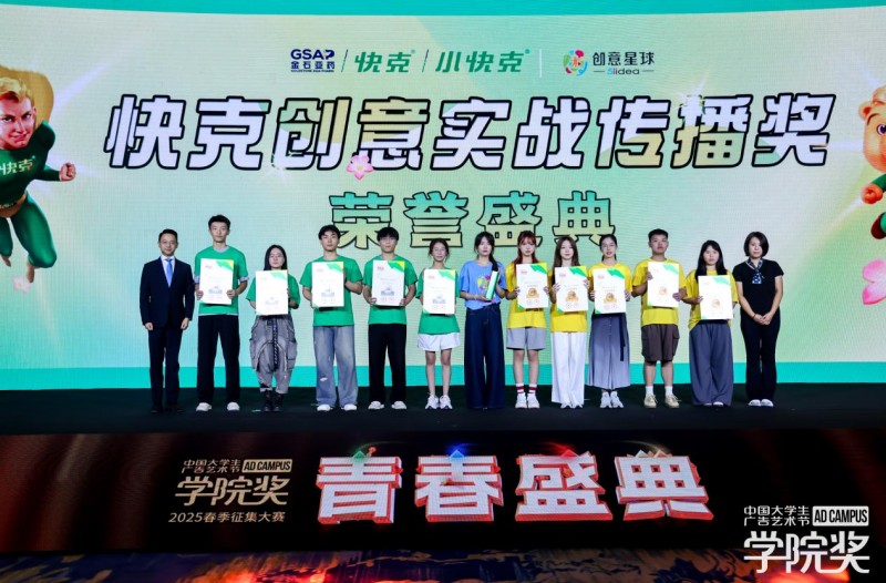备受关注的“快克创意实战奖”也在本次青春盛典上隆重揭晓!今年的快克创意实战奖全新升级,通过内容质量与传播效果两个主要维度进行考量,赛制交互性更强,奖项激励更是诚意满满!现场,天津商务职业学院广告学院院长、学院奖评审秘书长赵世勇老师宣读2025春季“快克创意实战内容奖”最终结果,并为创作团队颁发荣誉。