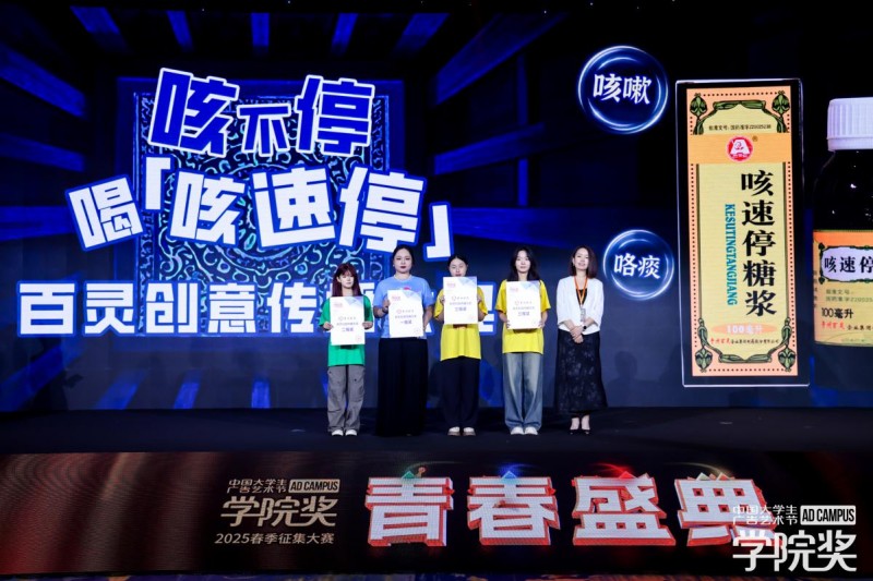 民族医药品牌贵州百灵始终秉持"守护国人呼吸健康"的使命,以"咳不停喝咳速停"为核心主题,给予同学们充分施展创意才华的空间。莘莘学子以多元化的艺术表达诠释对民族医药的全新理解,每一件作品都饱含着年轻人对传统苗药文化的创新解读,更彰显出贵州百灵"守正创新"的品牌精神。现场,贵州百灵企业集团制药股份有限公司品牌负责人吕淑贤女士宣读最终结果,东道品牌创意集团副总裁马志强先生、群橡广告创意主理人吴旻芳女士为创作团队颁发荣誉。