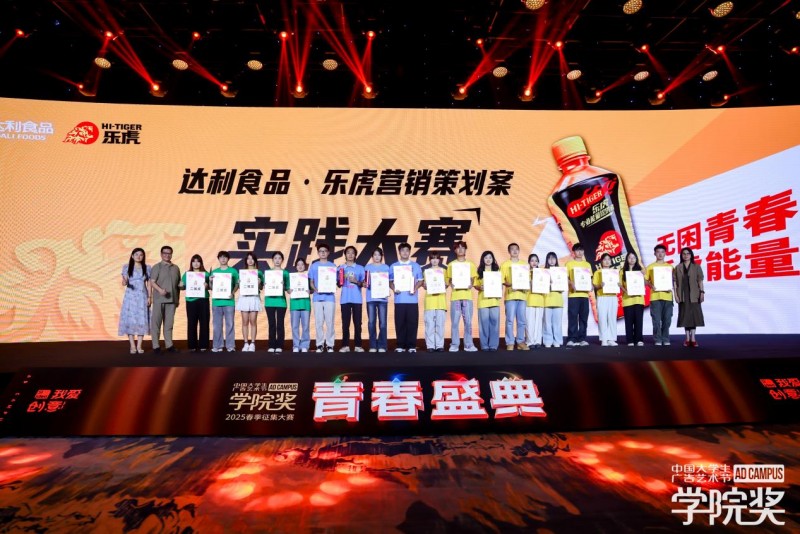 2025年,乐虎以“无困青春 乐虎能量”为主题,携手500ml瓶装乐虎,面向全国高校创新发起“乐虎营销策划案实践大赛”。在落地执行过程中,同学们深度结合体育、电竞、熬夜、舞蹈等需要能量的场景,紧扣品牌调性,和产品使用场景,在“玩”中学,将乐虎的品牌调性传达给更多年轻人。恩都瑞格(北京)广告传播有限公司ceo巴一先生带来赛事解读,并宣读“乐虎特等奖”最终结果,达利食品品牌方为创作团队颁发荣誉。