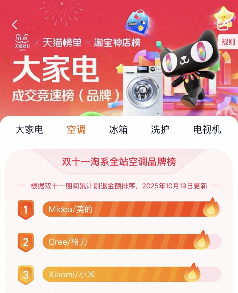 特别在天猫超级国补日期间(10月15日20:00-10月19日23:59:59),美的家用中央空调在天猫双十一国补抢先购活动中,成交额与销量均位列第一。