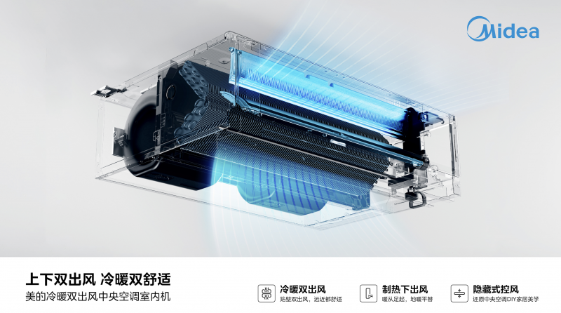 例如,美的领航者ⅳ采用的双出风室内机,就能够通过双翼变轨控风技术,根据不同的使用场景需求调整为上出风、下出风、双出风。在下出风模式下,可将热风送达脚底,制热更舒适;在制冷模式下开启双出风,远近温差<1℃,送风无死角;开启上出风,可以实现14m送风距离,客餐厅全覆盖;并且此内机隐形式安装,无需3d面板即可实现风向调节,兼具美观和舒适性。通过创新设计,实现上下双出风,冷暖双舒适。