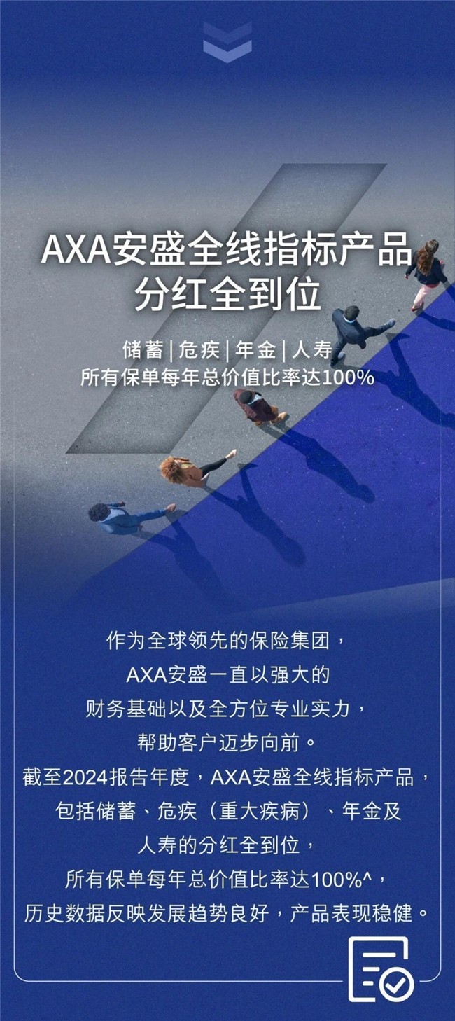 - 荣获专业保险评分机构10life根据分红表现及经验因素授予「稳定分红实现率公司2025」评级14,反映axa安盛在分红管理方面的持续经验与稳健表现。
