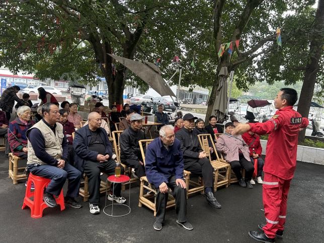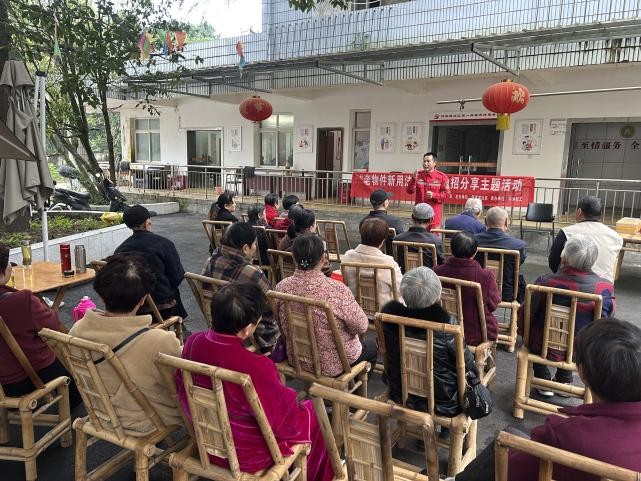 在日常生活中,老年人因身体机能衰退、信息渠道有限及固有生活习惯等因素,在面对突发灾害时往往更为脆弱。为提高社区长者的应急自救能力,筑牢安全防线,2025年10月28日,在温江区红十字会的支持下,由舒家渡社区主办,莘芽社工承办的“老物件新用法”应急妙招分享主题活动在社区为老服务站开展。本次活动特邀天虎救援队副队长左弟海担任主讲,围绕“身边物品应急用”这一主题,为老年居民带来了一堂生动实用的安全技能课。