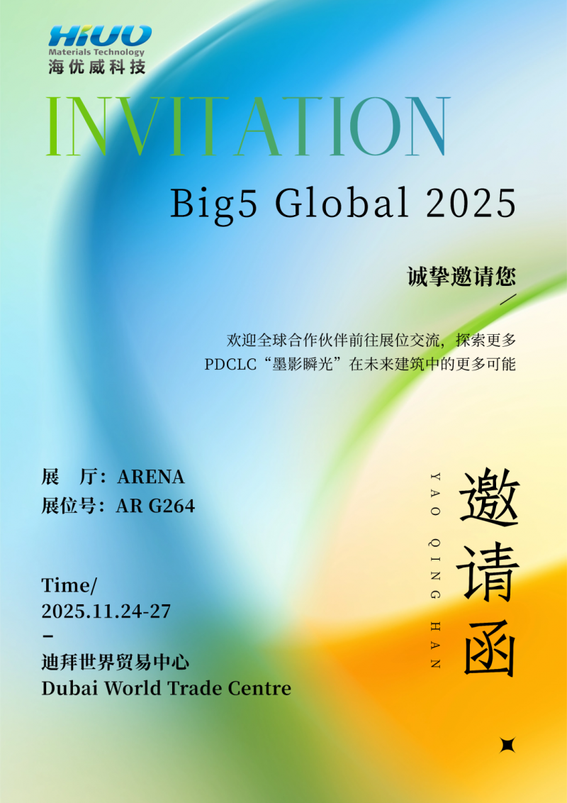 新闻行业垂直网站迪拜时间11月24日,中东及非洲地区规模最大的建筑与建造技术展会——big5 global 2025在迪拜世界贸易中心开幕。上海海优威新材料股份有限公司(简称“海优威”)携第三代pdclc“墨影瞬光”液晶调光技术亮相arena展厅arg264展位,正式向全球建筑行业发布其智能光控凯发k8手机网页的解决方案。这是该技术首次在建筑领域完整展示,也标志着海优威在光伏与汽车新材料积累之后,进一步拓展中东高端建筑市场。