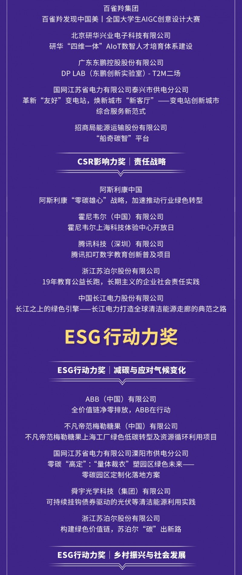 同期发布的《2025年csr中国教育榜优秀案例选编》收录了35家企业的38个优秀项目。《选编》将面向政府、行业、企业、高校、专业机构、媒体等相关方发布,深度触达4万 中外企业和500 中国顶级高校,直接影响超过400万职场青年和4,000万青年大学生,助力更多企业将csr/esg融入核心业务,共同探索责任创新的更多可能性。