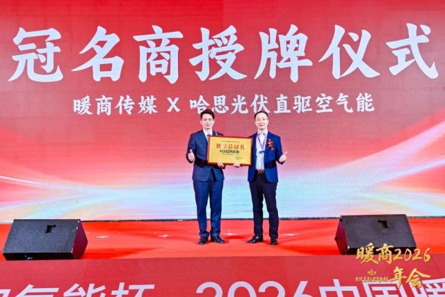 致辞环节后,大会迎来了首个仪式性时刻——冠名授牌仪式。暖商传媒正式向哈思空气能授予本次大会的总冠名牌匾。这一仪式,不仅标志着双方合作的深度落地,更向业界清晰地传递了媒体与领军企业强强联合、共同引领行业风向的坚定信号。
