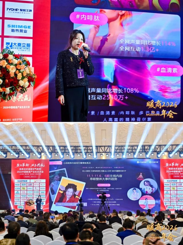 面对数字化浪潮,大会特邀 字节跳动官方服务商专家、暖商传媒电商学院院长于爱玲带来题为《新趋势·新蓝海·新增长》的专题分享。她深入解析了抖音全域生态的底层逻辑,并提供了与暖通行业深度融合的实战策略,为传统行业的品牌传播与销售增长开辟了充满想象力的新路径。