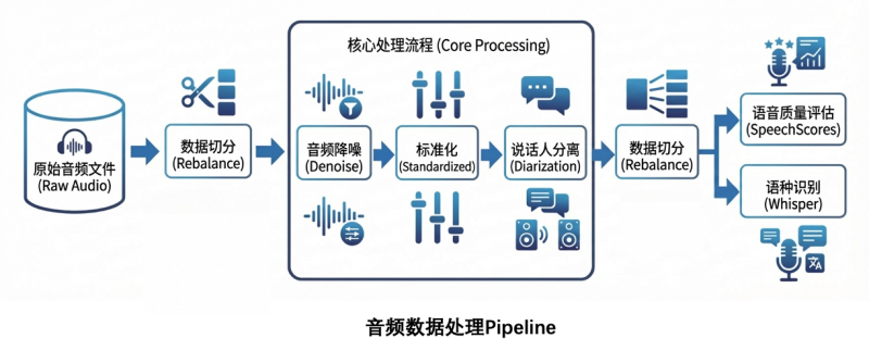· 依托 maxcompute 自研分布式 ai 计算引擎 maxframe,实现对音视频数据进行标准化、切分、语音识别等高效处理。 maxframe 支持通过 rebalance 实现数据切分、并发控制,从而在内存与吞吐之间取得平衡,放大性能收益。